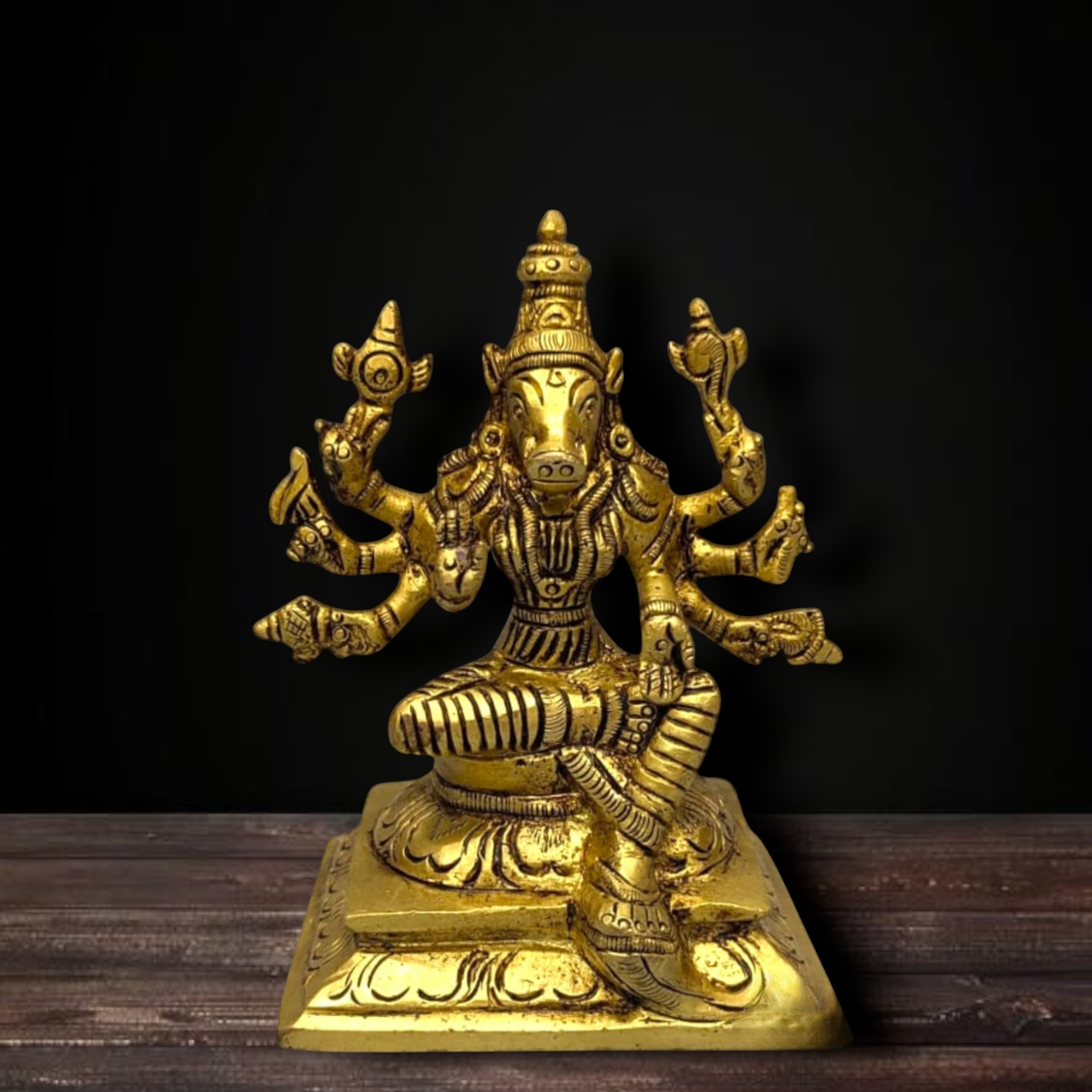 Brass Coated Varahi Amman Statue | 4.5 Inch Height Brass Gold Finish Idol | Varahi Amman Silai for Pooja & Temple Decor
