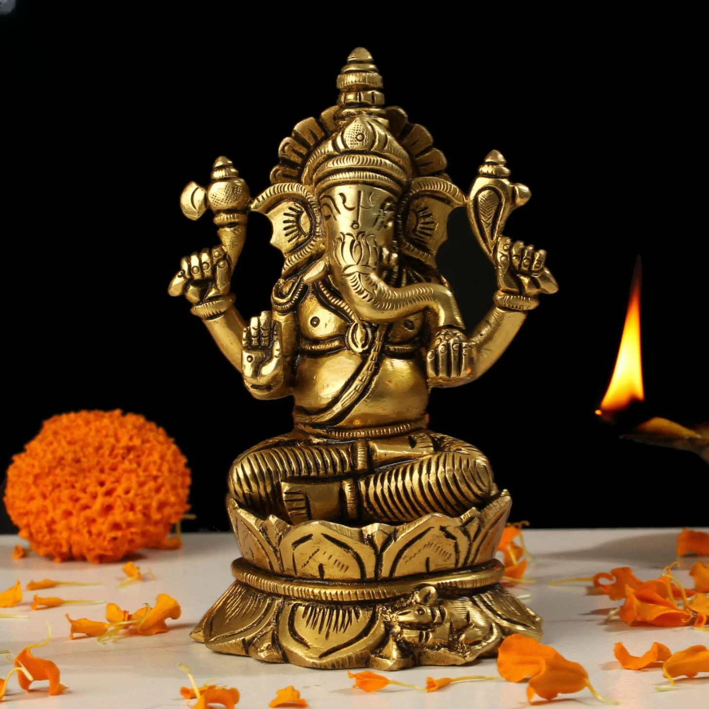 Brass Lord Ganesha Idol 5 Inch | Ganesh Murti for Pooja & Home Decor
