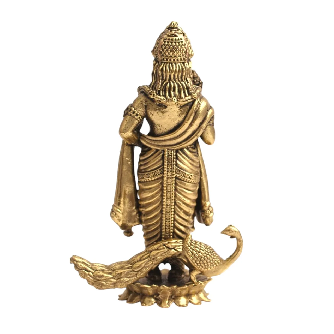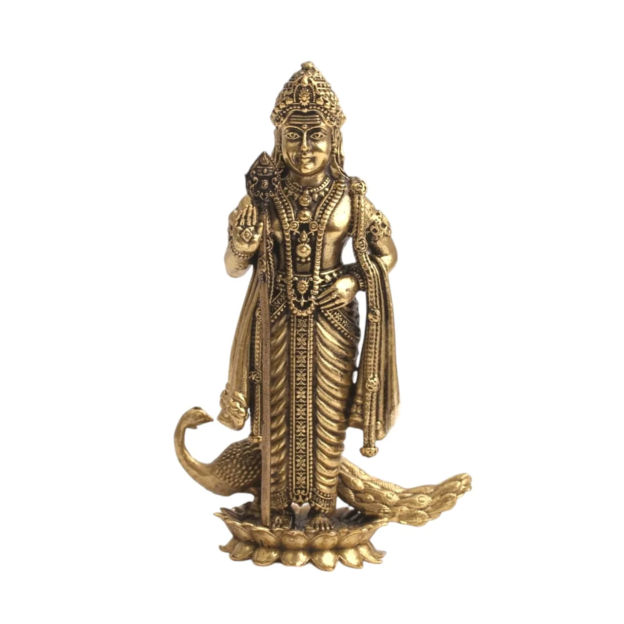 Premium Super Fine Brass Lord Murugan Standing Karthikeya with Peacock on Lotus Base – 6 Inch -