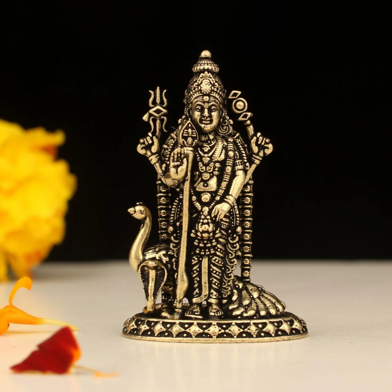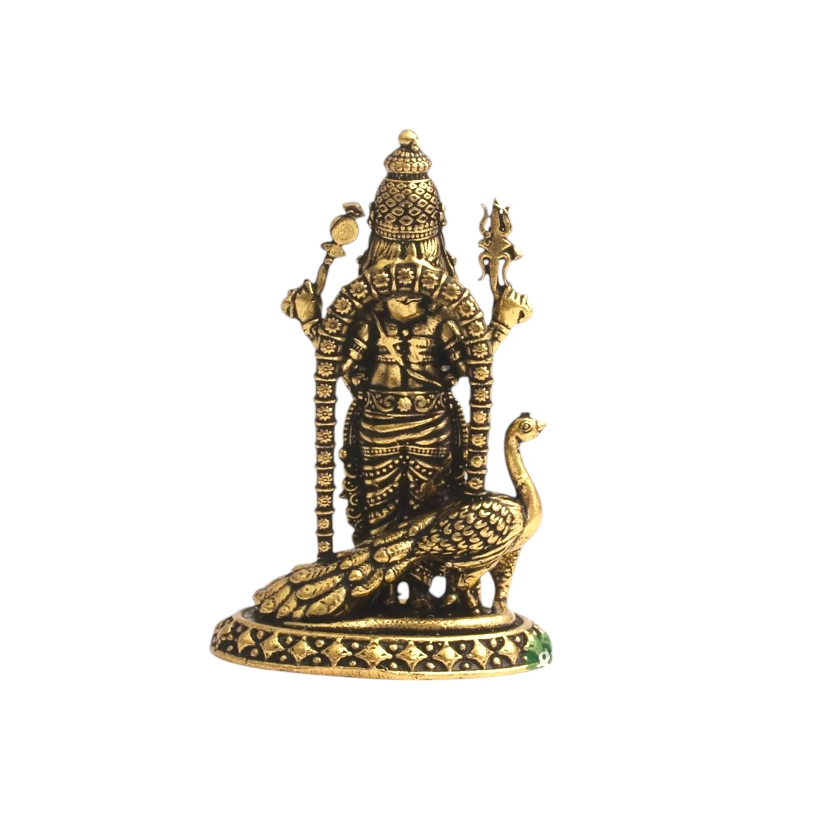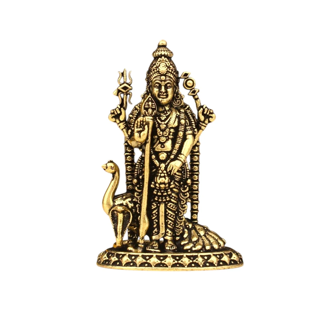 Premium Super Fine Brass Lord Murugan Standing with Peacock Idol – 2 Inch