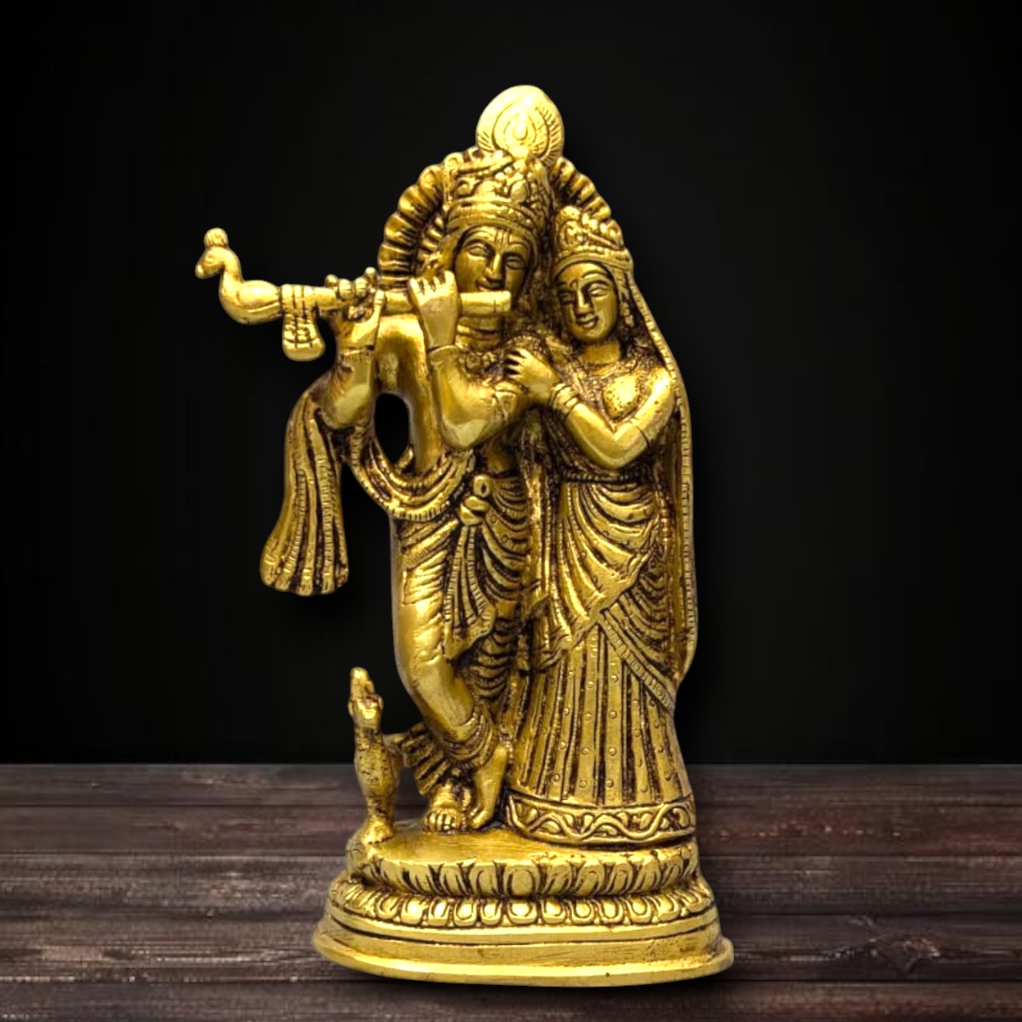 Pure Brass Radha Krishna Idol 9 Inch Handcrafted with Fine DetailingPure Brass Radha Krishna Idol 9 Inch | Handcrafted Krishna Radha Statue