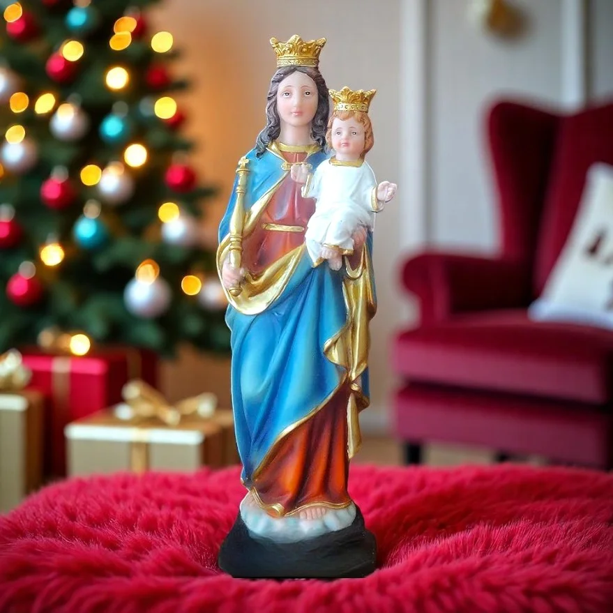 Sacred Heart of Mother Marie with Little Jesus with Crown – Holy Religious Idol for Christian Home Decor