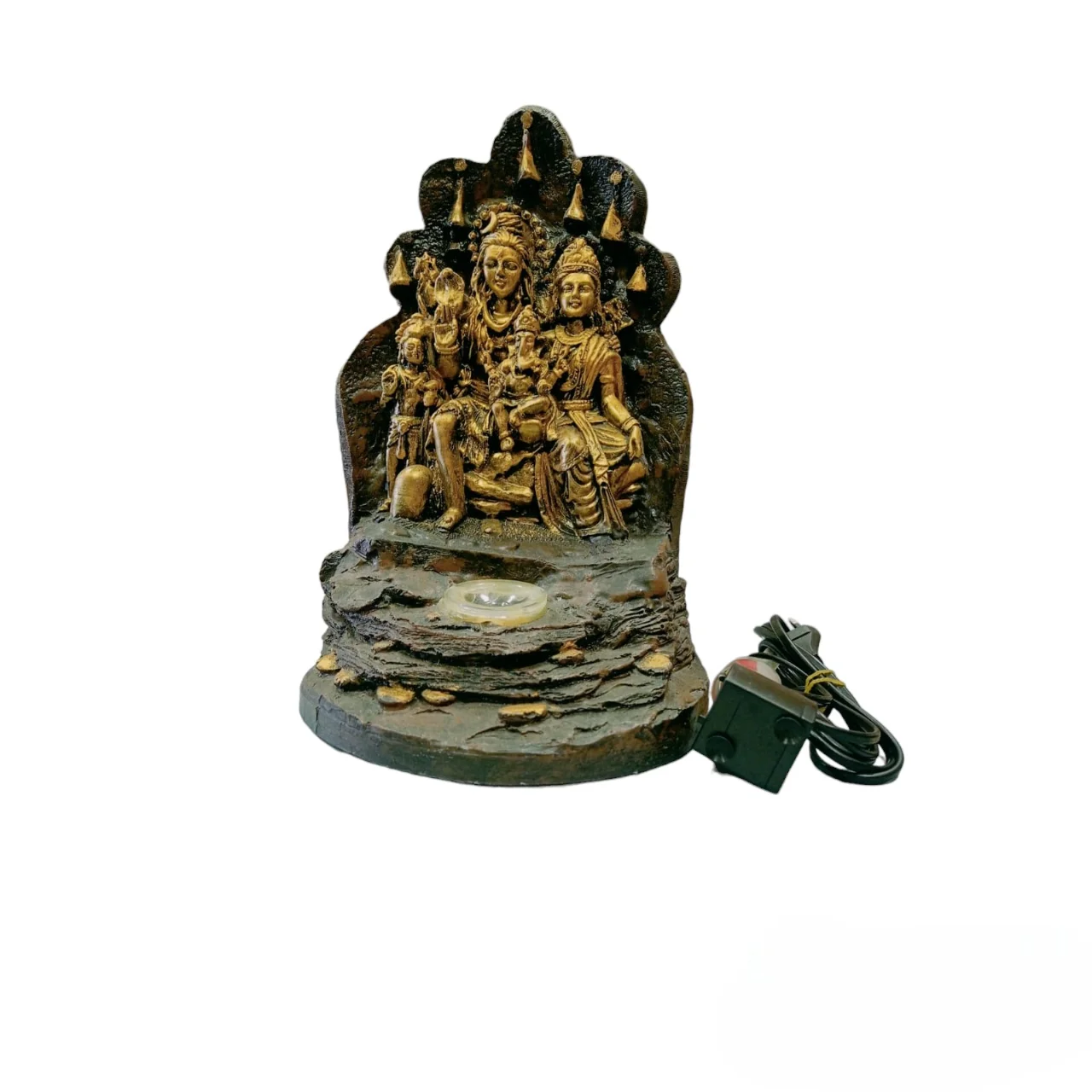 Shiva Family Water Fountain with LED Light – Lord Shiva, Parvati, and Ganesha Sculpture with Flowing Water